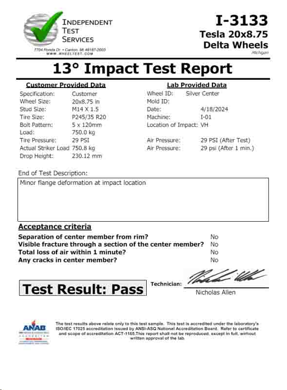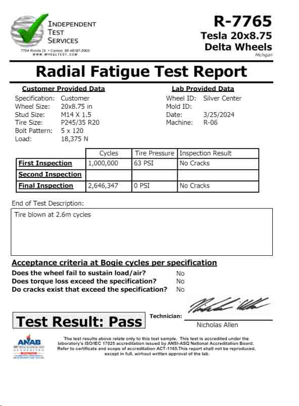 See our Radial Fatigue, Rotary Fatigue, and Impact Test Reports.